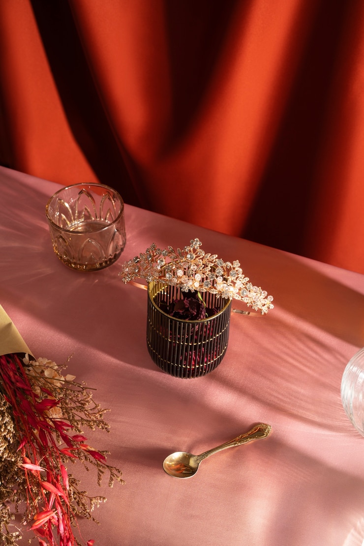 Янтарный цвет прекрасно подойдет для аксессуаров, оформления бара и помещений. Его можно использовать для создания акцентов в образах жениха и невесты.