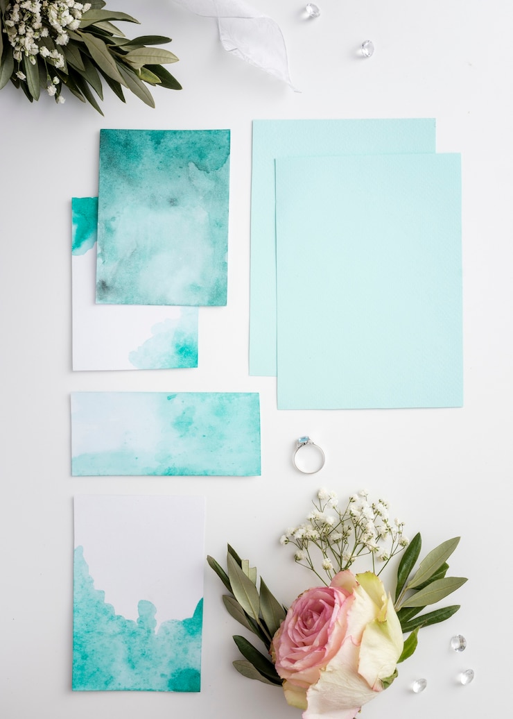 Небесно-голубой цвет придаст мероприятию нежность, легкость и изящество. Он идеально подходит для молодых пар. Этот тон хорошо сочетается с персиковыми или светло-розовыми оттенками.