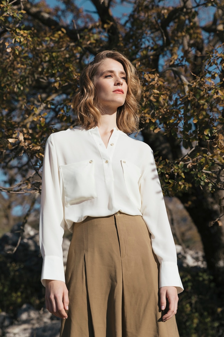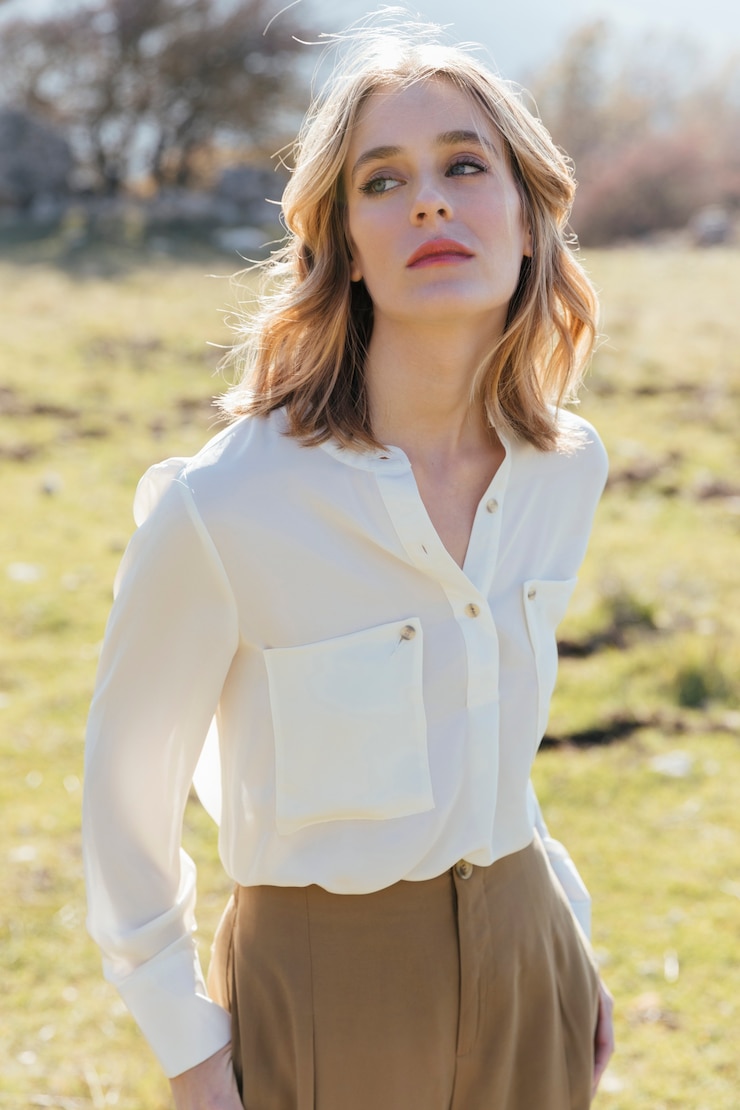 Рубашки, находящиеся в тренде этого сезона, зачастую изготавливаются из струящихся материалов, таких как шелк. Эффектные складки ткани, оформляющие область выреза, добавляют облику элегантности и привлекательности.