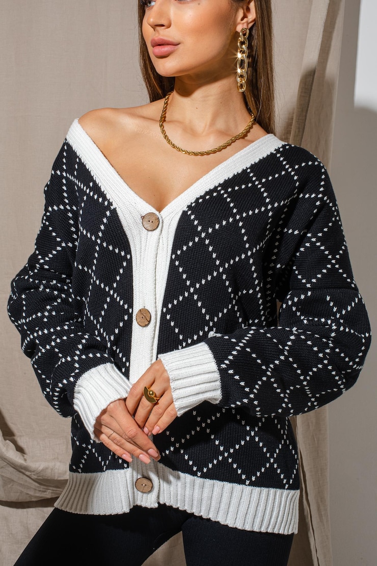 В моде будут кардиганы с пуговицами, с кнопками, на молнии или модели с запахом и поясом. Пуговицы стоит выбирать крупные. Их располагают в один или два ряда. Возможно застегивание изделия на несколько пуговиц, оставив остальные незастегнутыми.