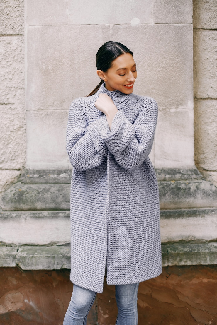 Образы, подчеркивающие женственность, дополнят модели, выполненные в стиле пальто или накидки. Кардиган-пальто обычно имеет длину до колен. Для его изготовления чаще используются твид и другие плотные материалы. Такая вещь прекрасно сочетается с платьями.