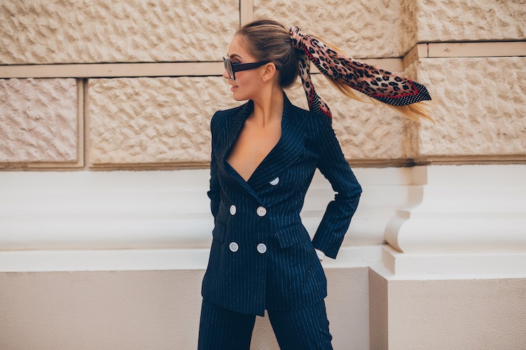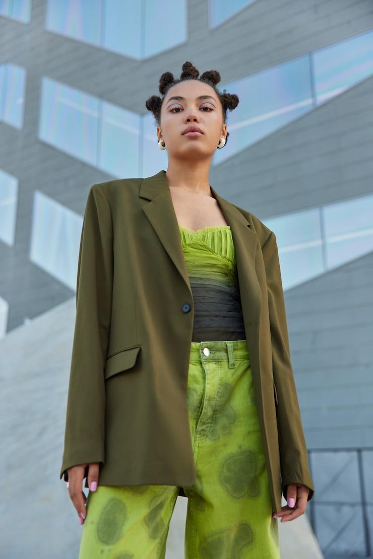 Свободные пиджаки по-прежнему актуальны и помогают визуально уменьшить рост, скрывая фигуру под объемным кроем. Их универсальность заключается в простоте сочетания с различными предметами гардероба, включая верхнюю одежду. Например, под пиджак можно надеть кожаную куртку, жилетку или кофту, формируя непринужденный многослойный ансамбль.