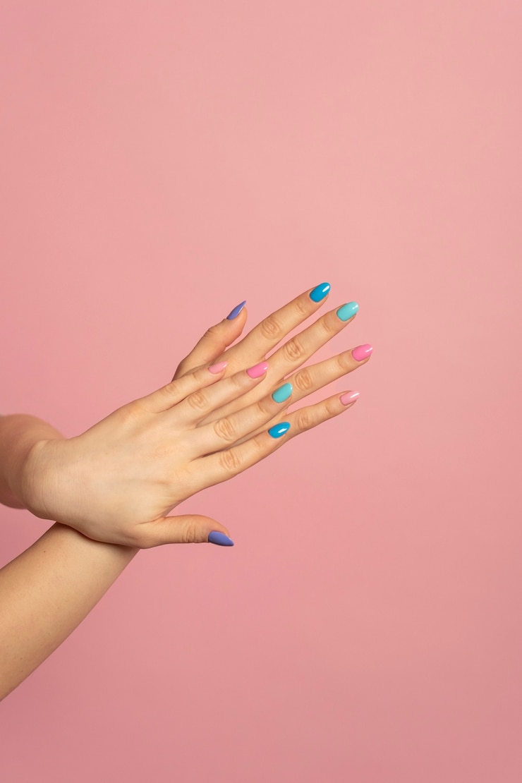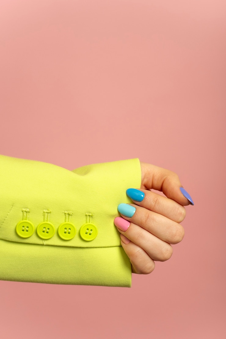 Яркие цвета также могут быть использованы в качестве покрытия. Однако предпочтение отдается так называемым «зефирным» тонам. Светло-желтый, нежно-розовый, небесно-голубой и бледно-салатовый станут актуальными в следующем году. Их активно применяют для создания плавных переходов и других техник.
