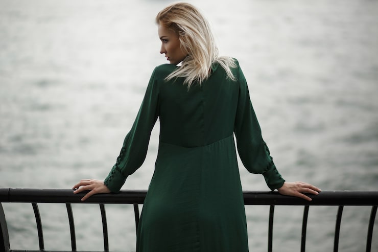 - Изящный V-образный вырез или элегантный воротник-стойка – оба эти фасоны подчеркивают женственность.