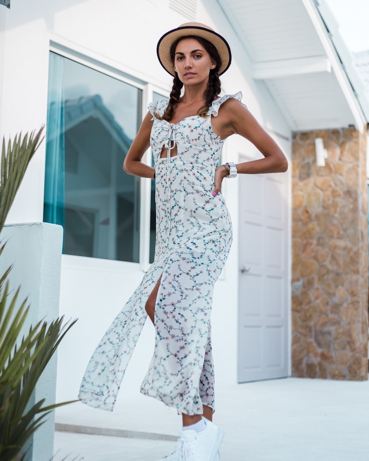 Среди работ таких дизайнеров, как Valentino, JW Anderson, Dior, представлены стильные воздушные модели. В моде фасоны с прямым кроем лифа, тонкими лямками и юбкой-трапецией, выполненной из легкой ткани. Также актуальны красивые изделия свободного кроя или с расклешенной юбкой.