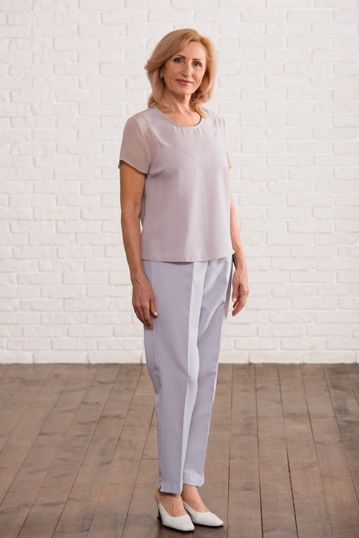 Необязательно выбирать объемные платья или юбки, чтобы создать стильный гардероб для женщин старше пятидесяти лет с пышными формами. Брюки давно стали частью современного женского стиля и пользуются популярностью у женщин всех возрастов. Они особенно удобны при формировании повседневных комплектов.