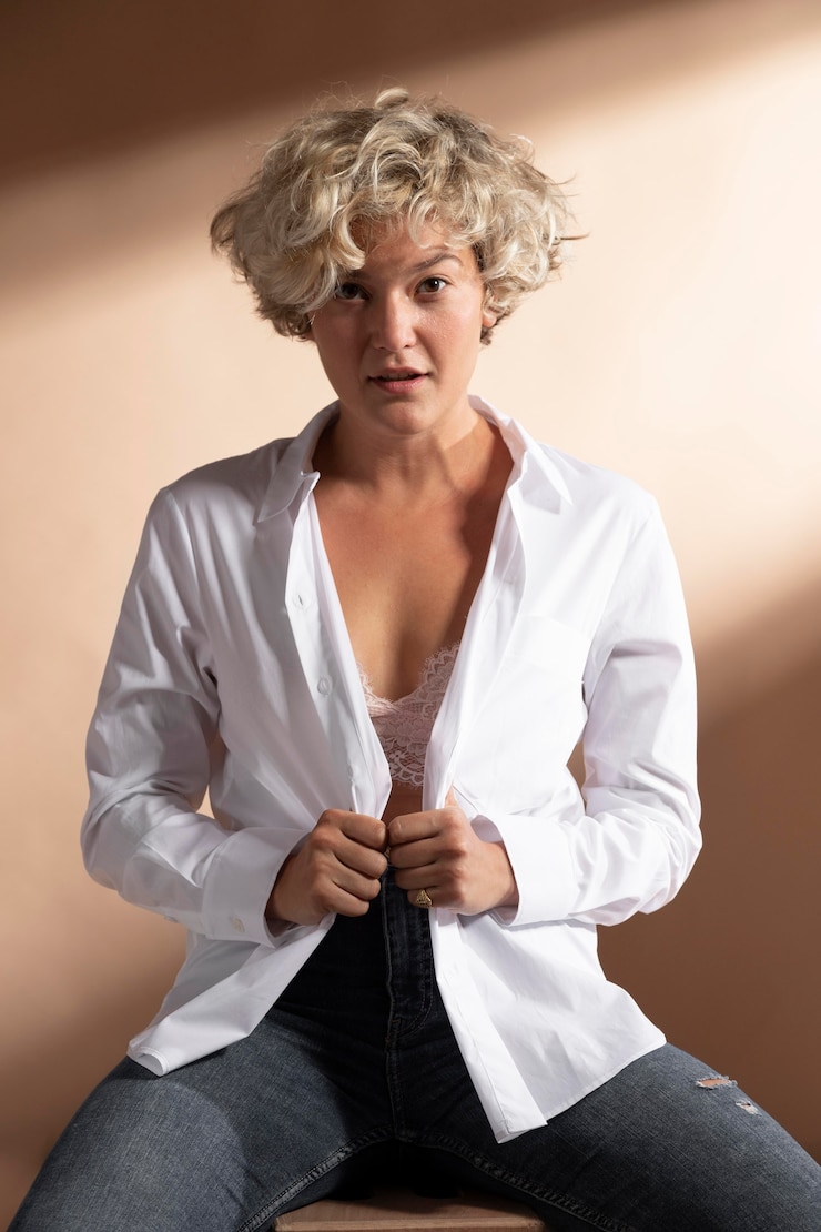 Для женщин с пышными фигурами отличным выбором станет сочетание шелковой рубашки или футболки с курткой.