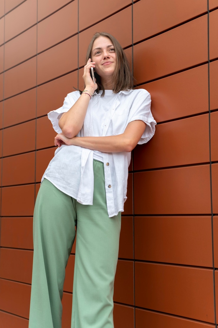 - Приталенные брюки — отличный выбор. Однако, этот фасон подойдет не всем, важно учитывать особенности фигуры. В настоящее время светлые оттенки брюк пользуются популярностью, но для создания более стройного силуэта стоит отдать предпочтение темным цветам.