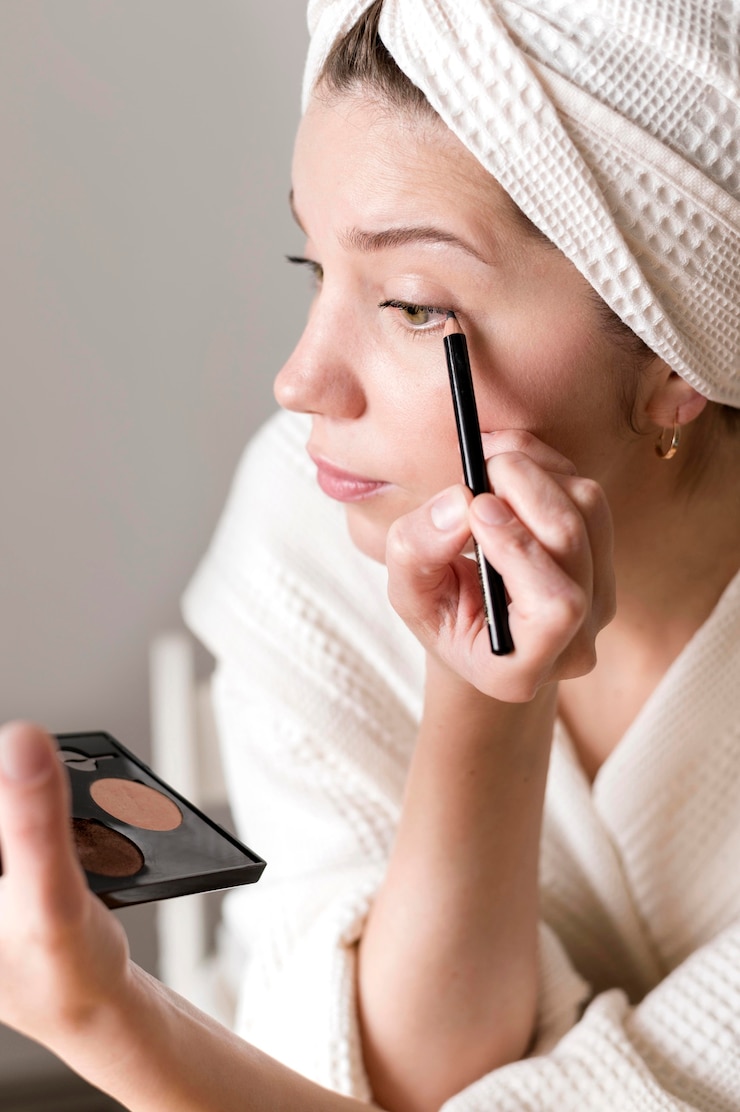 - Перед началом макияжа глаз следует подготовить поверхность век, нанеся праймер.