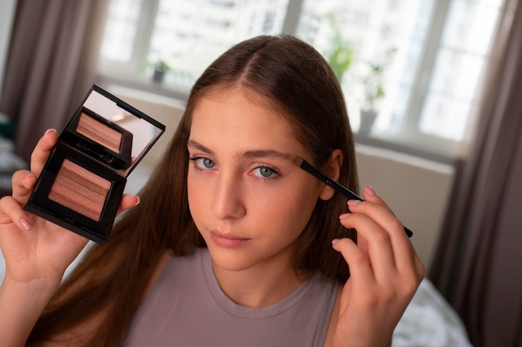- Для придания формы и цвета бровям можно использовать карандаш, красящий пигмент или тени.