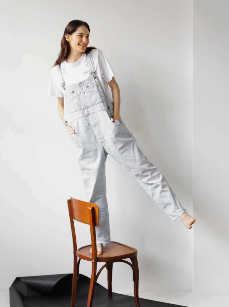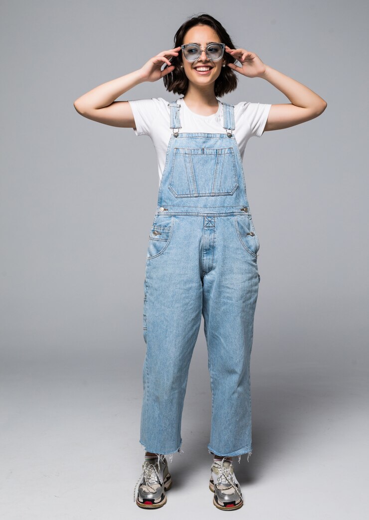 Для создания модных и выразительных образов джинсовые комбинезоны хорошо смотрятся в сочетании со следующими вариантами верха: