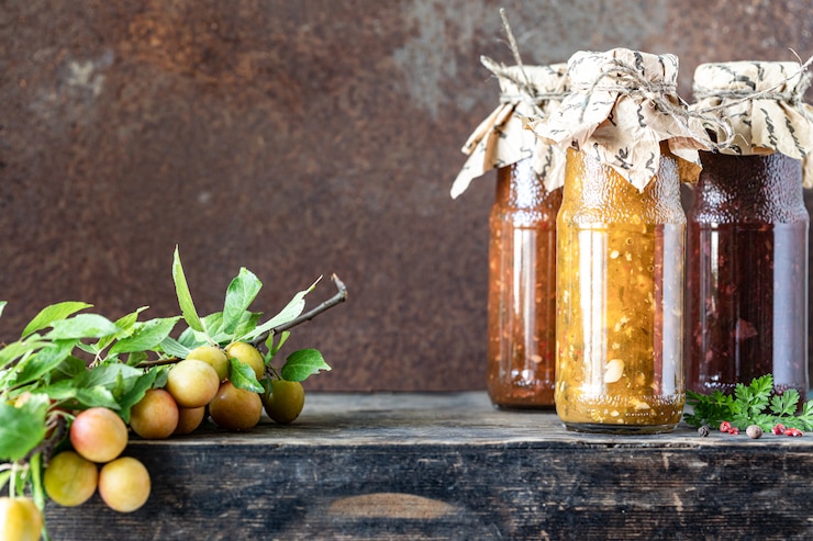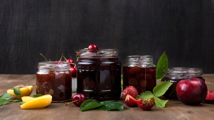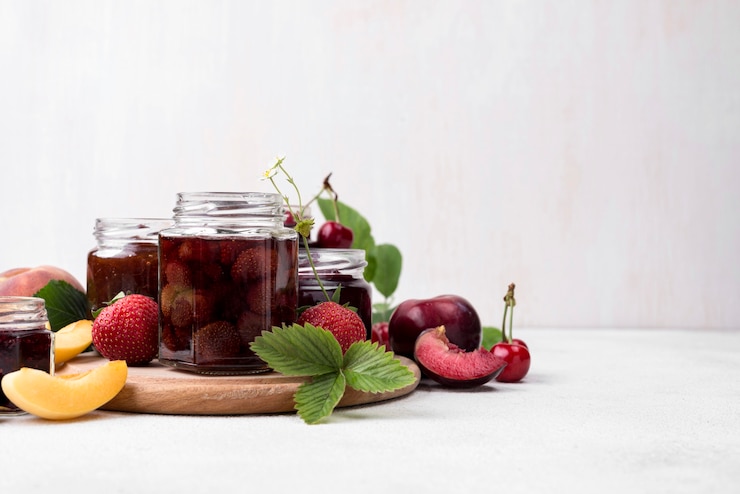 - В стерильную банку помещают фрукты, после чего приступают к изготовлению сиропа.