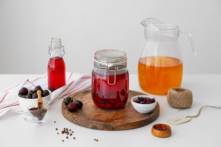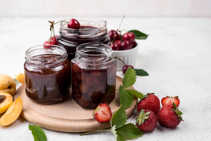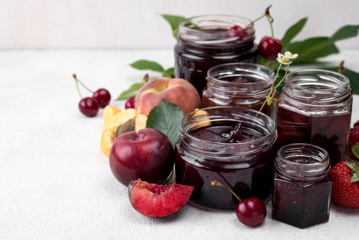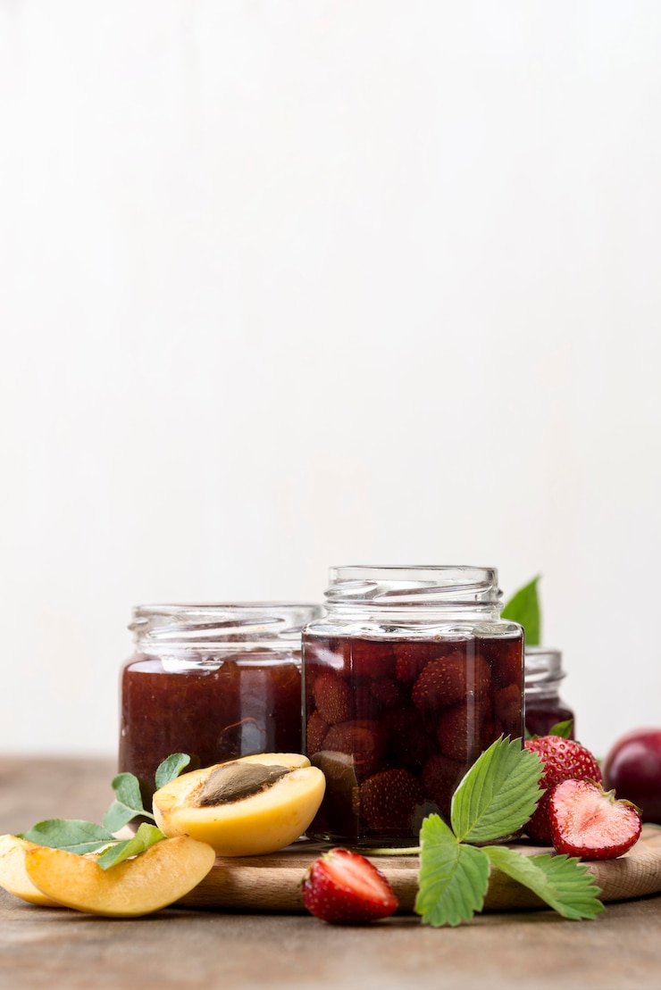 - Фрукты заливаются горячим сиропом, а банки закупориваются.