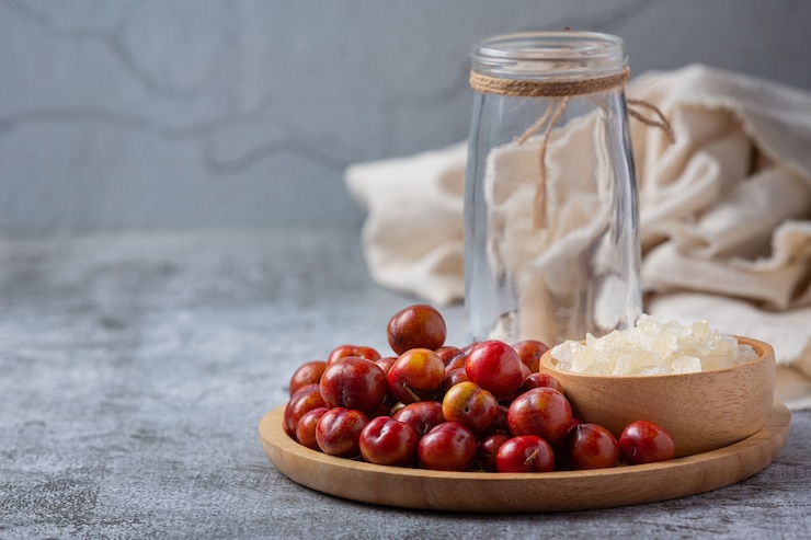 - В сливовый сироп добавляем сахар и временно оставляем.