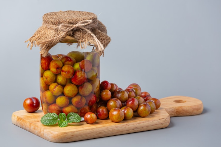 - Сливовые плоды поребриками прокалываем зубочисткой, а затем помещаем в стерилизованные банки.
