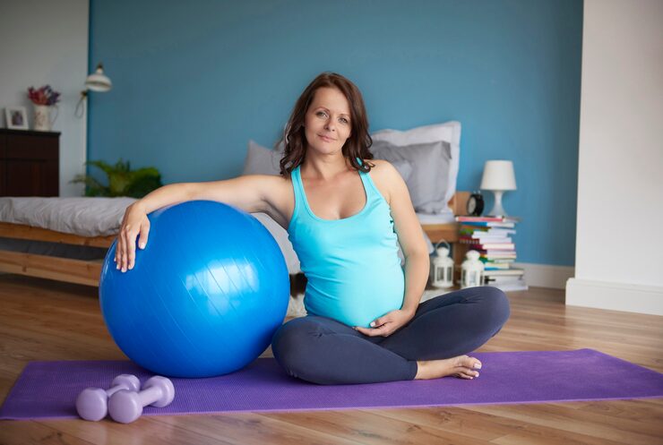 Фитбол. Гимнастика на фитболе – еще один действенный способ поддерживать форму. Занятия на мяче могут быть более удобными и результативными для будущих мам. Важно учитывать, что в первом триместре нагрузки следует выбирать умеренные. Если до беременности вы не занимались физической активностью, рекомендуется отложить занятия до второго триместра.