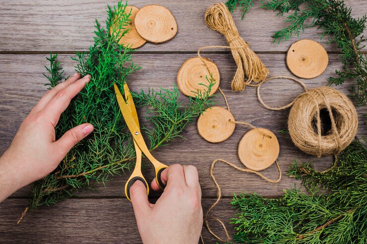 Прежде всего, самую крупную шишку следует обмотать шпагатом в несколько слоев. Затем закрепить и скрыть концы.