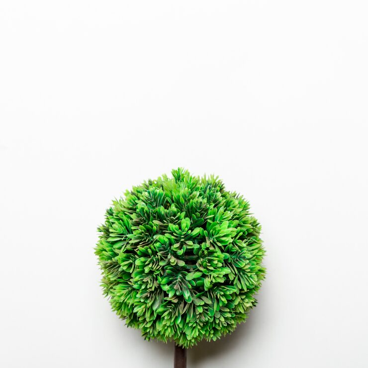 Для начала необходимо создать каркас будущей кроны топиария. В качестве основы можно использовать пенопластовый шар или шарики для настольного тенниса – выбор остается за вами. Я предпочитаю делать шарики из газеты, так как, на мой взгляд, они обладают оптимальным соотношением веса и плотности. Для этого газетные листы промазываются клеем в нескольких точках и формируется шарообразная конструкция.