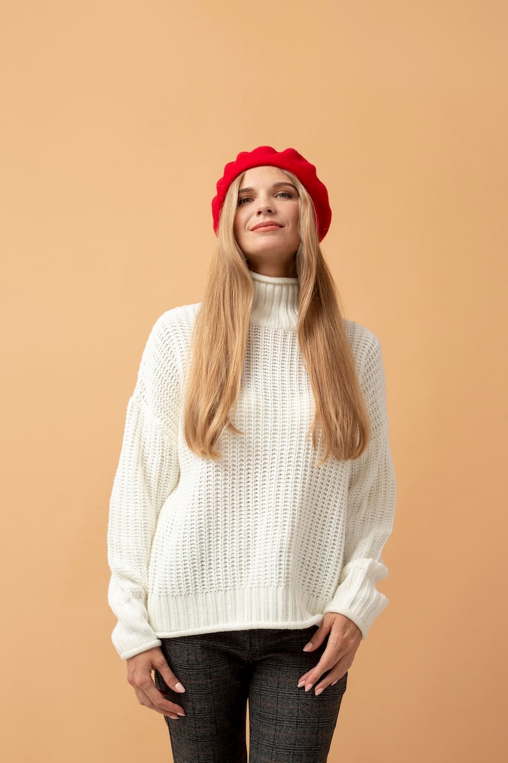 После завершения вязания кокетки переходим к формированию рисунка. Вывяжите первый ряд фантазийного узора.