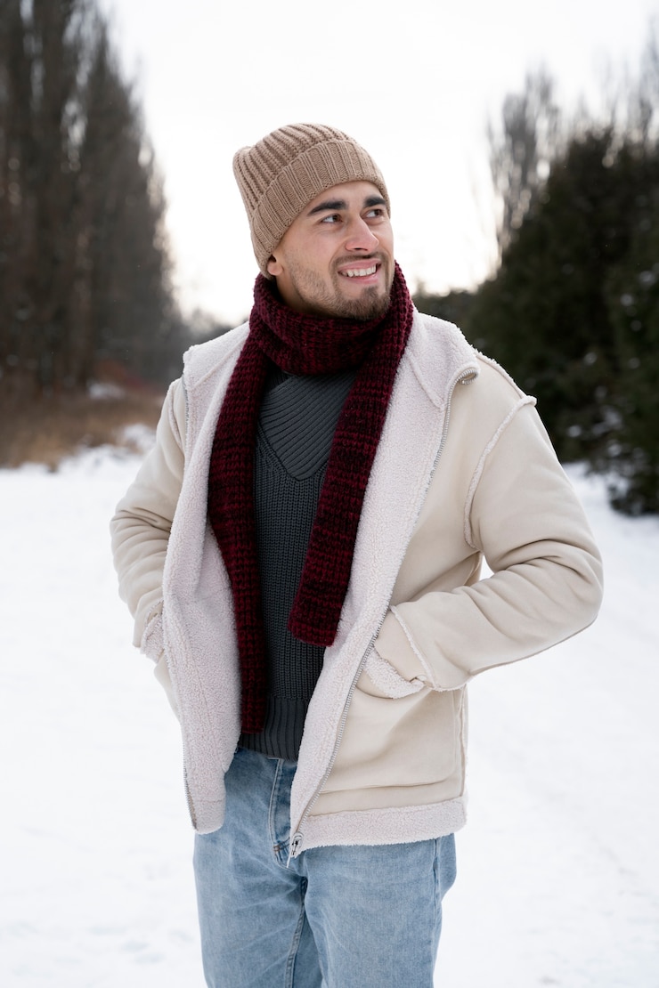 Не менее актуальным является пальто оверсайз. Для защиты от сильного ветра можно выбрать пальто классического фасона с воротником. Клетчатый шарф станет отличным дополнением к этому образу – он может быть выполнен в бордовых, серых или темно-синих тонах).