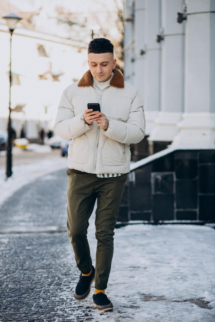 Альтернативным выбором является куртка в спортивном стиле, отражающая направление теквир. Это, по сути, «технологичная» одежда. Если вы не знакомы с данным стилем, рекомендуется ознакомиться с новинками, просмотрев фотографии. Под куртку можно надеть теплую водолазку или толстовку, чтобы сформировать спортивный лук. В обоих случаях оптимальным дополнением станут брюки классического прямого кроя темного оттенка.
