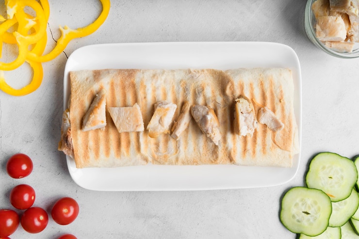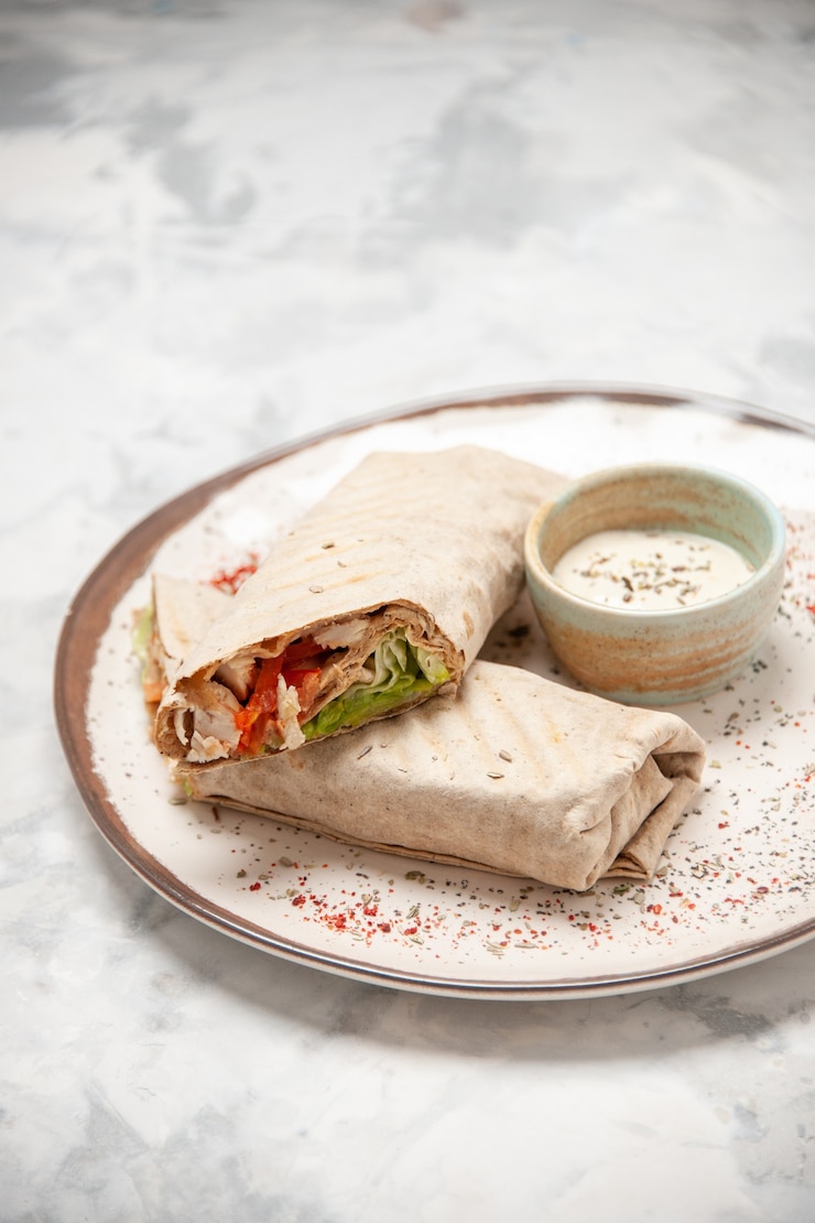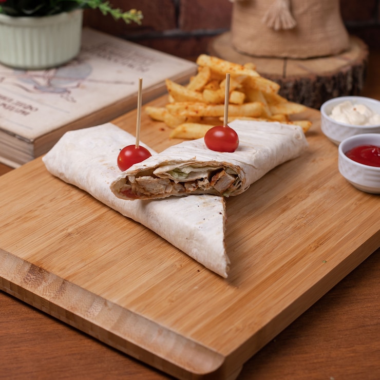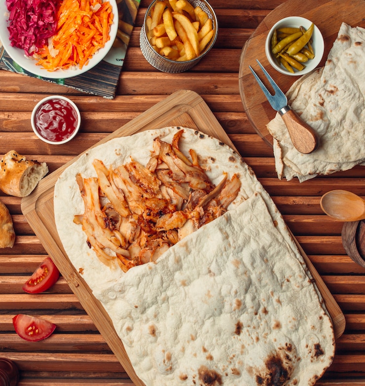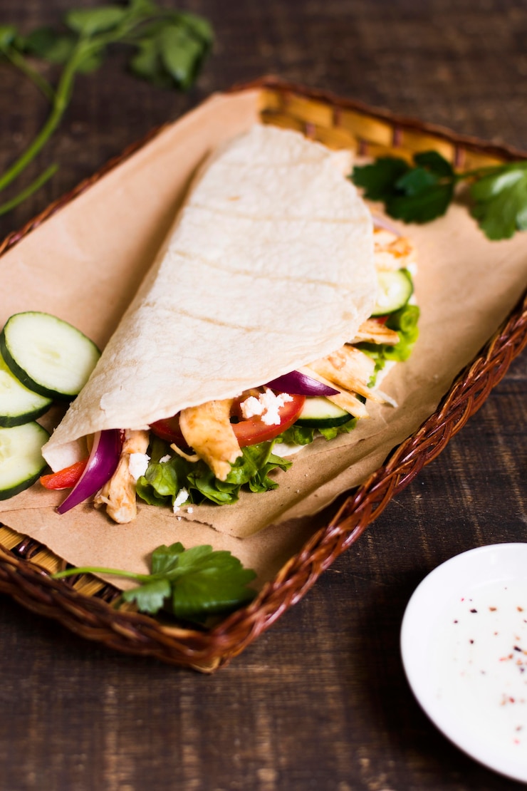 Шаурма с курицей и соусом цацики – вкусное блюдо из свежих овощей, сочного мяса и ароматного соуса, которое можно сделать дома.