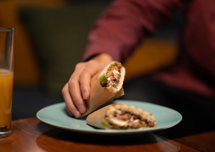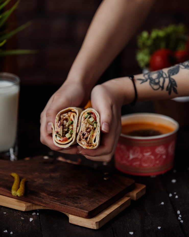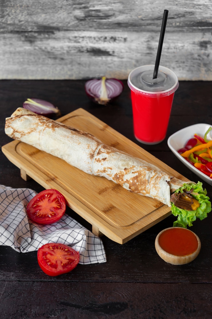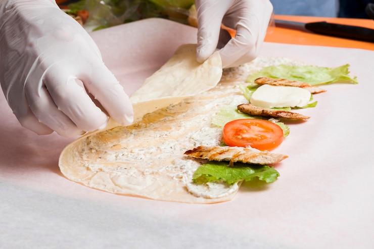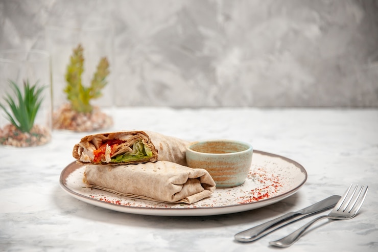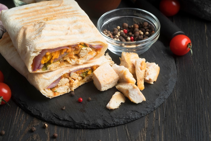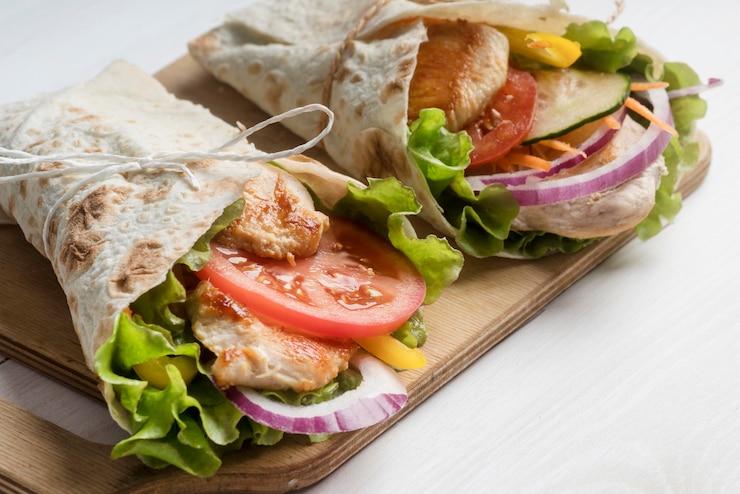 Шаурма с курицей и соусом цацики – вкусное блюдо из свежих овощей, сочного мяса и ароматного соуса, которое можно сделать дома.