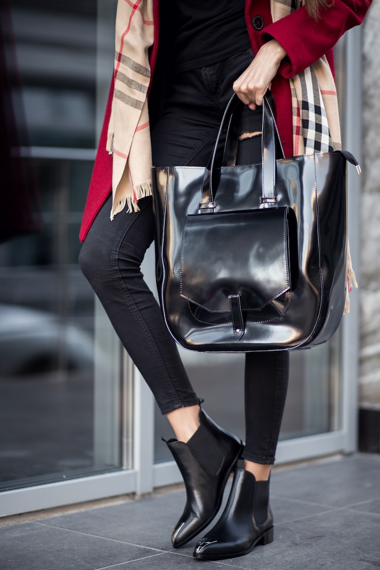 Форма сумки-тоут рассчитана на комфорт: ручки удобно расположены, имеются карманы, и она вмещает много вещей. К этому аксессуару подойдут как туфли на высоком каблуке, так и стильные балетки или оксфорды.