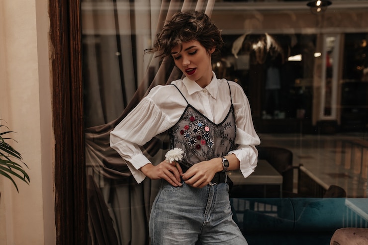 Стильная рубашка с глубоким вырезом станет прекрасным выбором для вечеринок. Это может быть модель с запахом, с застежкой на замочек или с разнообразными декоративными застежками. Использование шелка или атласа, а также жемчужного блеска, придаст любому образу шарма и изысканности.