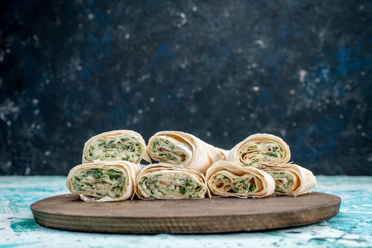 - Формируем лаваш с начинкой в виде колбаски и нарезаем его острым ножом на порционные кусочки.