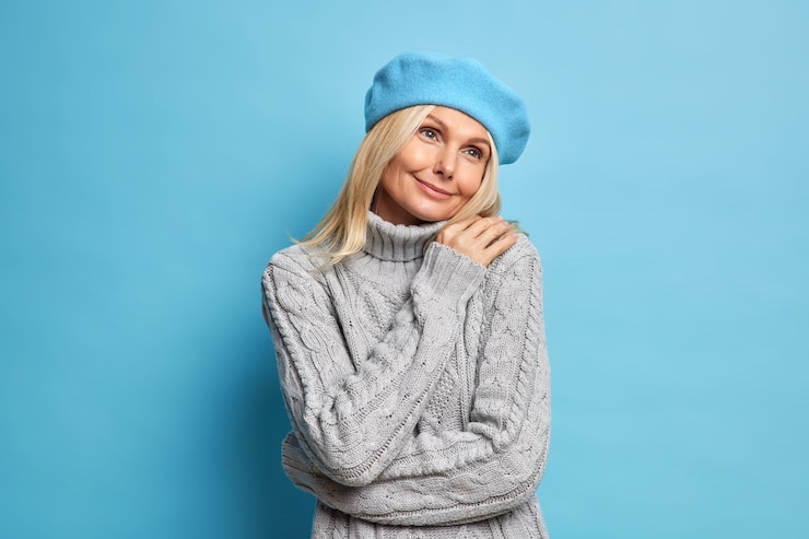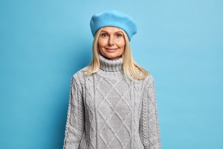 Какой еще головной убор для женщин после 50 лет в 2022 году стоит рассмотреть для себя? Безусловно, это стильный берет. Вопреки общему мнению, он может выглядеть действительно хорошо. Взгляните, например, на фото ниже.