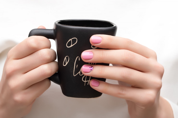 - Изящный дизайн, выполненный в спокойных тонах, выглядит сдержанно и лаконично. Дизайн ногтей в стиле минимализм станет отличным выбором для повседневных и деловых образов.