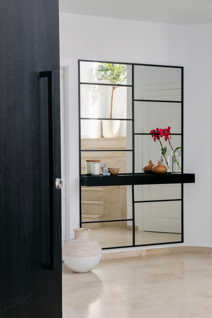 В прихожую можно добавить зеркало, этот предмет мебели способен преобразить дизайн интерьера. В настоящее время в моде изделия с коваными элементами или зеркала, занимающие всю стену.