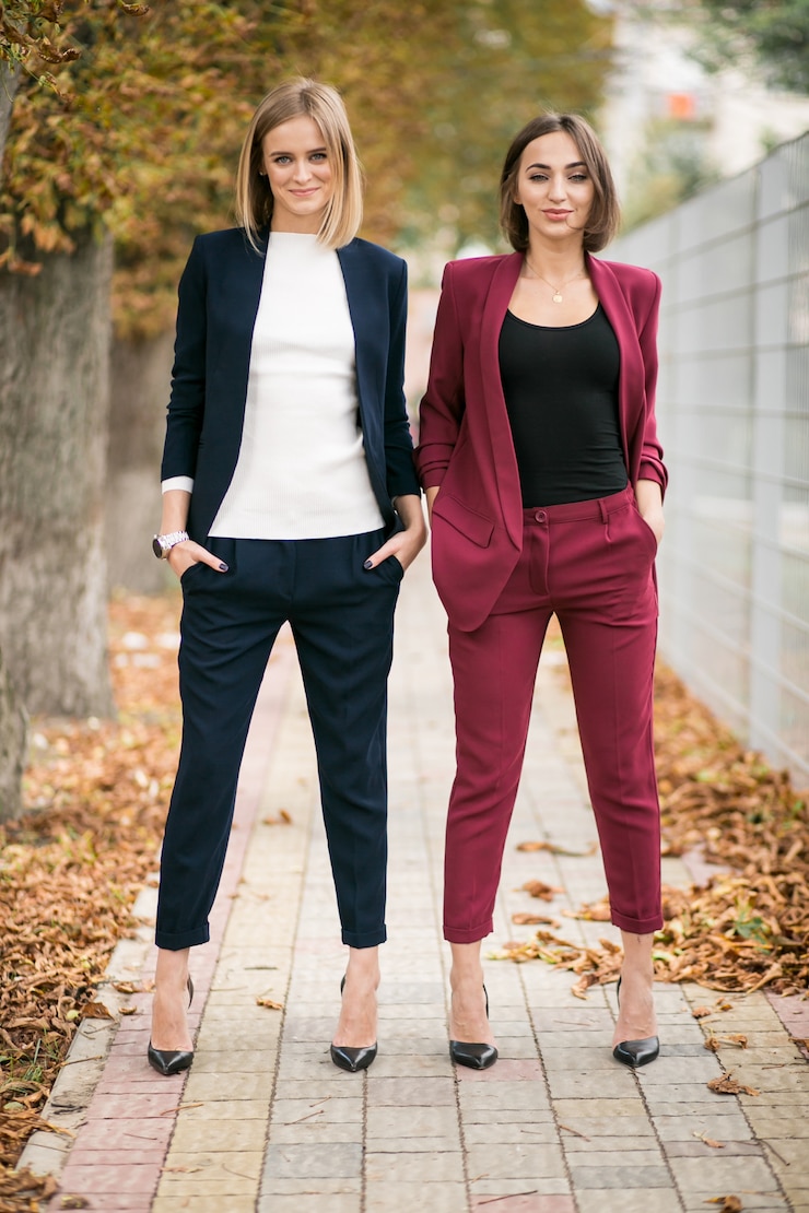 Двубортный пиджак отличается наличием двух рядов пуговиц, что позволяет фиксировать широкие борта, накладывающиеся друг на друга. Эти модели особенно удачны для женщин с пышными формами, поскольку две вертикальные линии пуговиц зрительно вытягивают силуэт, акцентируют талию и улучшают осанку.