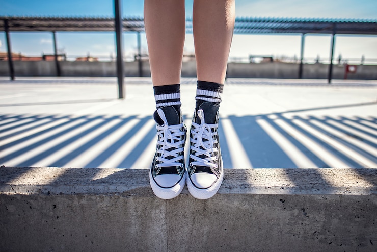 - Кеды с высоким голенищем характеризуются тем, что их верхняя часть выходит за пределы щиколотки, часто закрывая значительную часть голени. Такая конструкция обеспечивает не только поддержку стопы, но и придает образу привлекательный вид. Данные модели могут изготавливаться как с плоской подошвой, так и с платформой.