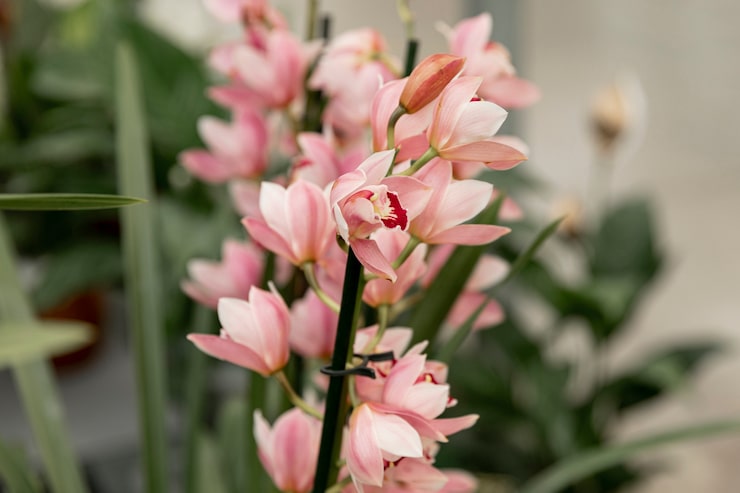 Гладиолусы могут достигать 1,5 метра в высоту, характеризуются прочными стеблями и кожистыми листьями. Их колосовидные соцветия варьируются по цвету от белоснежных до насыщенно-бордовых и цветут в период с июля по сентябрь. Для успешного выращивания гладиолусам необходимы солнечные места и нейтральные или слабокислые почвы.