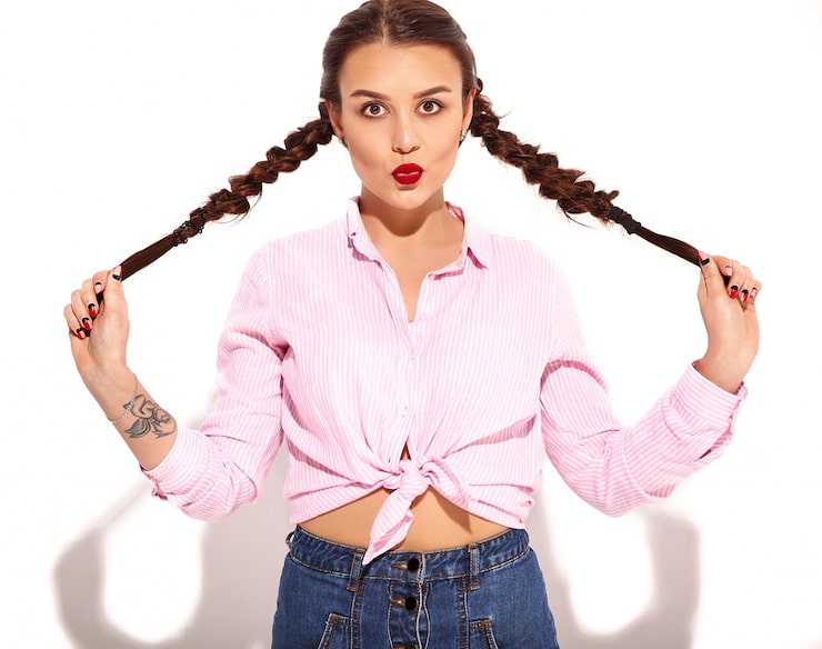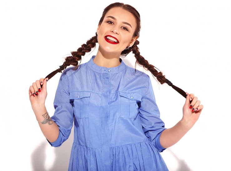 Традиционные, или «русские» косы по-прежнему остаются одними из самых популярных вариантов причесок с плетением для повседневной носки. Даже на показах мод все чаще можно увидеть моделей с аккуратно убранными волосами, плотно заплетенными сзади в косу. Особенно эффектно такая укладка выглядит на достаточно длинных волосах – «коса до пояса». На более коротких волосах делают прямой пробор и плетут сзади две низкие косы. Такие прически не привлекают к себе лишнего внимания и позволяют лучше рассмотреть и оценить наряды. Помимо этого, убранные волосы делают черты лица более выразительными, а ниспадающие по спине косы смягчают строгость внешности. Аккуратно подобранные украшения – заколки, бусы, ленты – завершат образ и определят его характер, сделав его либо повседневным, либо праздничным.