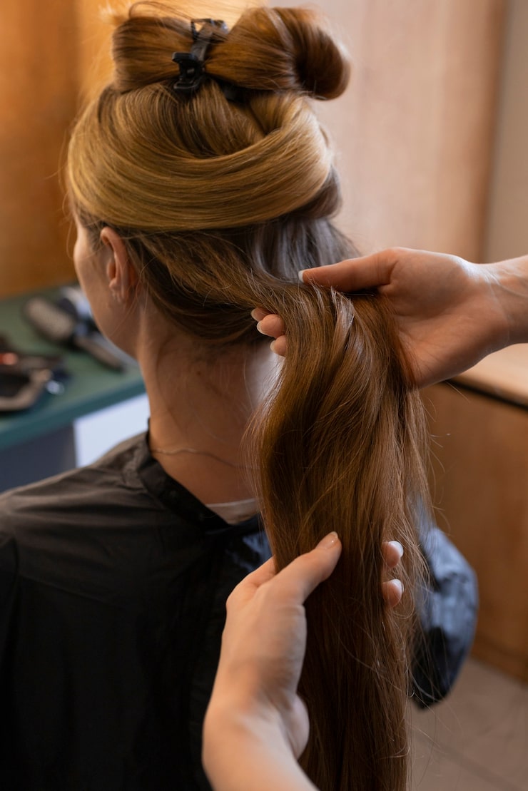 Косы, собранные в пучок или высокую кичку, эффектно подчеркивают изящные изгибы шеи и плеч. Для делового образа такая укладка не нуждается в дополнительных декоративных элементах – достаточно лишь шпилек, фиксирующих волосы. Она соответствует требованиям строгого корпоративного дресс-кода, гармонично сочетается с костюмами-тройками и позволяет акцентировать внимание на благородстве лаконичных украшений.