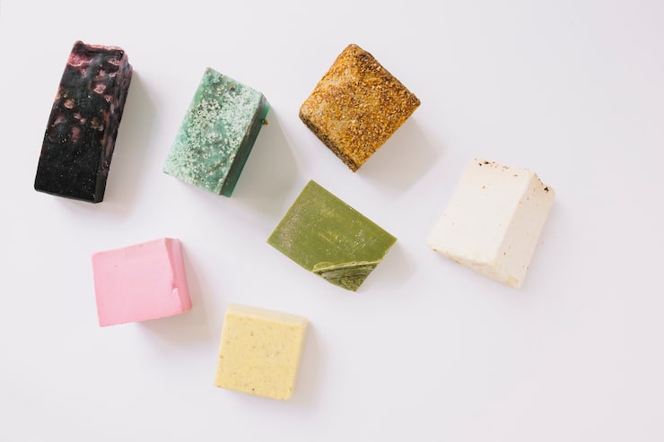 - Для улучшения косметических свойств мыла в его состав добавляют компоненты, способные питать, увлажнять или очищать кожу. Среди наиболее востребованных натуральных ингредиентов – мед, молоко или сливки, хлопья зерновых культур и тертый кокос, шоколад, кофе, цедра цитрусовых и различные виды глины.
