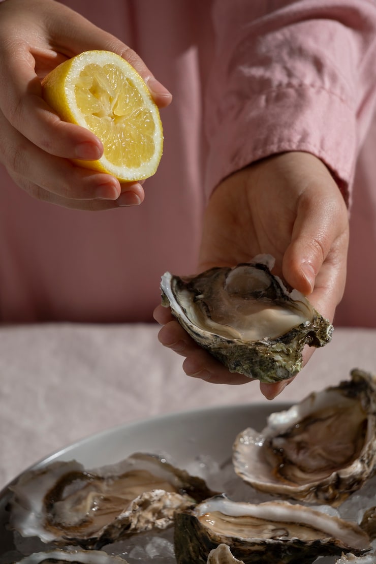 Чтобы сбалансировать вкус и убрать запах моря, его добавляют в небольшом количестве. Используют всего несколько капель, чтобы не перебивать вкус устрицы. По желанию можно добавить немного соуса «меньонет» (уксусная заправка с шалотом и перцем), но важно не злоупотреблять им. -